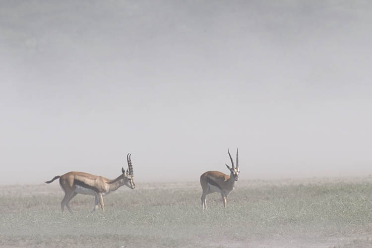 Tompson gazelles in sand storm