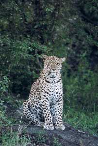 March 10th, 1994 Missed Opportunity Number 4873 This morning we met up with Beauty, the half-year old daughter of Paradise, as she was sitting unhappily rather uncomfortable high up in a relatively thin tree. Jonathan Scott, who had been standing by her for a while watching her, told me that a strong male Cheetah had chased her up the tree. Just as I got there, the Cheetah was slowly moving off. We parked the Toyota Landcruiser so that I could take some good shots when the Leopard came down the tree. Light, detail and background were perfectly chosen for this picture. Then, ten minutes later it was time: Beauty gave off some noises in the tree that sounded a lot like anger, unhappiness or frustration, and came climbing down the tree trunk just as expected, and ran with the fastest possible speed for Leopards away from the clump of trees, over a completely clear 100 m wide grassy area to the closest hilly, rocky, with brush covered terrain, that was an ideal place for a Leopard who wanted to hide. The answer to the puzzle: the strong Cheetah male hadīnt really left, but was lying about 100 m away in a depression, where we couldīnt see him, but the Leopard in the tree top was able to see him. Since she probably didīnt feel like waiting any longer in the wobbly tree until the Cheetah was gone, she decided on this getaway in great, fast leaps to the protective underbrush. If I would have known that 5 minutes earlier: a Leopard at full speed over a totally clear and wonderfully green terrain you could have taken very aesthetic and dynamic pictures of this wonderful feline ......if you had the right shutter speed.......... The elegant Beauty clearly photographed at full speed, with a totally wiped background, the tail strung out straight behind her, all four legs flying in the air..... Holy Toledo !!!! That I hat two other situations on that same afternoon, that couldīnt be turned into slide material, the numbers 4874 and 4875 for the file of missed opportunities, is not worth mentioning. First, at 5pm, Paradise jumped high, protracted over a 3 4 meter wide ditch and it looked like a horse taking a hurdle on course. Of course I was about 20 meters too far away when that happened. Then she was lying for about 5 10 minutes on a high Termite hill when suddenly the cloud cover ripped open and there was this beautiful deep red sunset.