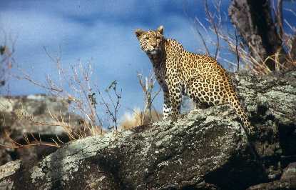 Leopard Mang´aa at the age of one year. Nikon F 90x, 2,8/80 200 mm, Sensia 100, car-camera-mount.