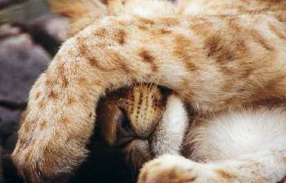 little Leopard at the age of three months. Nikon F4, 4.0/600 mm, Fujichrome 100, car-camera-mount.