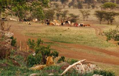 Tail is watching the Maasai shepherds and their animals Nikon F4, 4.0/100 300 mm, Fujichrome 100, car-camera-mount.
