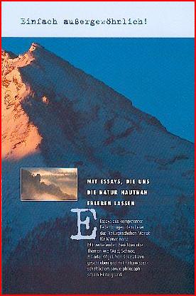 Um das Wasser aber mit noch einigen süperben Geschmacksverbesserern anzureichern, sind dann noch den Naturgenuß vertiefende Essays mit in das Konzept aufgenommen worden. Die machen das Buch für die Presse noch attraktiver und verführen hoffentlich zu noch ausführlicherer Berichterstattung.