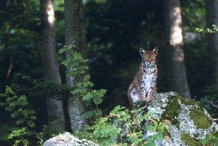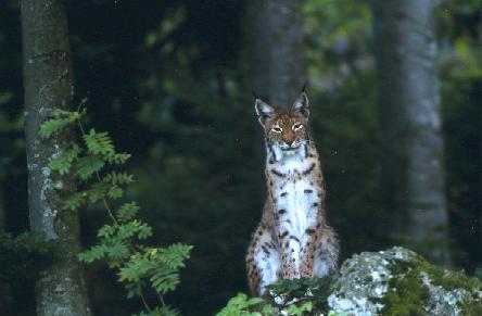 Ein Beispiel: (Fast) jeder kennt das Luchsgehege im Nationalpark Bayerischer Wald. Diese Luchse werden jeden Morgen so zwischen 7.30 und 8.oo Uhr gefüttert. Eine Stunde vorher warten sie schon auf den Wagen mit ihrem Futter. Dabei sitzen sie manchmal gegenüber, etwa 5o Meter entfernt am Waldrand unter hohen und dichten Bäumen auf großen Felsbrocken. Es ist dort - besonders so früh am Morgen - sehr, sehr dunkel. Außerdem muß man für bestimmte Bildaussagen mit einem 1,4x oder sogar 2x Konverter arbeiten, um die große Entfernung zu überbrücken.