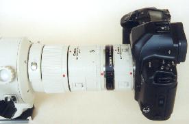 Mit zwei Konvertern gleichzeitig zu fotografieren ist ganz einfach. Man braucht lediglich einen passenden Zwischenring. Für die beiden Canon AF-Konverter etwa den Canon AF-Zwischenring EF-12. Wenn man am Objektiv den 2x Konverter anschließt, dann den Zwischenring und danach zur Kameraseite hin den 1,4x Konverter setzt, kann man mit dieser Kombination sogar bis 'unendlich' auf der Skala scharf einstellen. Man hat dann ein Objektiv 11.o/1.400 mm, wenn das Grundobjektiv ein 4.0/500 mm ist.