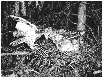 Waldohreulen am Nest (6x9-Kamera, Objektiv