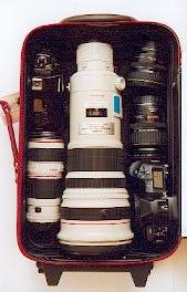Und ihre Chancen steigen auch, die Koffer wiederzusehen.. ..und 4. ...und die 4 als Zusatzzahl: Hier noch einmal ein Auszug aus einem früheren Artikel zum Thema: Was ist die beste Strategie? Eine Frage die niemand beantworten kann ist: Kann man die Kameraausrüstung aufgeben und nur die Filme als Handgepäck transportieren? Im Prinzip schon, aber überstehen es die Kameras und Objektive? Äußerlich sicher. Man könnte die Geräte auf einen oder zwei mittlere Hartschalenkoffer verteilen, und die jeweils in einen größeren weichen Koffer verpacken, mit Wäsche drumherum als 'Zwischenpufferzone'. Empfehlen würde ich das aber nicht. Die Justierungen moderner AF-Kameras und moderner AF-Objektive scheinen mir zu sensibel zu sein, um den oft sehr robusten Umgang mit Koffern durch die Flughafenbetreiber zu überstehen. Man darf nicht vergessen: Bevor am Flughafen jemand in der Gepäckabfertigung arbeiten darf, muss er erst einen dreiwöchigen Intensiv-Kursus mitmachen wo ihm beigebracht wird, wie man einen Koffer aus drei Meter Höhe auf die Kante fallen lässt, wie man fachgerecht Riemen und Handgriffe abreißt; was man machen muss, damit man in Hartschalenkoffer lange Risse bekommt, und vor allem: was man berücksichtigen muss, damit ein Koffer genau mit der Ecke auf einen anderen Koffer mit voller Wucht aufschlägt, damit dieser aufplatzt. Das alles ist nicht so einfach und muss lange trainiert und geübt werden. Wer einmal gesehen hat, wie aus einem Jumbo zwanzig Koffer aus großer Höhe einfach auf den Zementboden knallten, der wird nichts Empfindliches für den Rest seines Lebens in einen Koffer packen, den er aufgeben muss. Es reicht eigentlich schon, wenn man auf manchen Flughäfen am Gepäckband sieht, wie die Koffer aus der Luke auftauchen und dann herunterrutschen und unten gegen den Rahmen des Förderbandes knallen. Anscheinend haben Flughafenbetreiber mit dieser Art Gepäckförderbänder selber ein etwas schlechtes Gewissen, denn manchmal steht da extra ein Flughafenmitarbeiter, der die Koffer mit der Hand abbremst, bevor sie gegen die Begrenzung knallen. Aber - er steht eben nur manchmal da, und wenn er zufällig mal da ist, verliert er oft die Lust nach den ersten 80 Koffern und verschwindet, damit die noch folgenden 250 Koffer ungehindert ihrem Schicksal schnell entgegenrutschen können. Wenn das zweimal passiert, braucht man sich um die Justierungen keine Sorgen mehr zu machen. Die sind wahrscheinlich hin. Zweimal schon habe ich erlebt, das alle Aufnahmen einer Reise unscharf waren, weil der Spiegel in der Kamera nur einen Millimeter dejustiert war, durch einen leichten Schlag - wie er kommt, wenn etwa der Fotorucksack vom Sitz eines Busses gerutscht ist oder so. Wenn der Spiegel in der Kamera nicht ganz genau im Winkel steht, also statt auf 45 Grad etwa auf 46 Grad, und man stellt dann die Schärfe auf diesem dejustierten Spiegel ein, dann liegt nachher bei den Dias die Schärfe immer einen Meter vor oder hinter dem Motiv, was nicht sehr lustig ist. Daher scheint es mir nicht ratsam zu sein, die Ausrüstung aufzugeben. Was tun? Die einfachste Lösung ist halt ein Photorucksack, der eindeutig unter den genehmigten Maßen bleibt. Im Zweifelsfalle ist es sicher ratsam, einige Wochen vor dem Flug (damit man noch Zeit hat zu reagieren) mit dem probegepackten Photorucksack zum nächstgelegenen Regionalflughafen zu fahren, und ihn einmal als Test in die dort aufgestellten Handgepäckkontrollrahmen zu stecken um zu sehen, ob er problemlos hineinpasst. Bei den heutigen Massentransporten in Großraumfliegern und dem oft ziemlich genervten Personal ist es als Alternativlösung aber auch nicht schlecht, wenn man überhaupt nicht als Fotograf mit Supergepäck auffällt, sondern quasi 'unbemerkt' als normaler Tourist einscheckt..