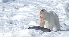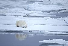 10. Tag. Bis zum Frühstück lag das Schiff eingebettet zwischen Eisfeldern. Dann machten wir uns wieder auf die Suche nach Eisbären, möglichst mit einer eben erbeuteten Robbe. Gegen 10.00 Uhr fanden wir auch einen und konnten ihn etwa 2 Stunden lang fotografieren. Teilweise mit schönem Spiegelbild im Wasser, im Hochformat und formatfüllend mit 500 mm bei strahlendem Sonnenschein. Am Nachmittag – auf der Fahrt zu nordischen Blumenfeldern - hielt Dr. Wayne Lynch einen Diavotrag über die Vogelwelt der Arktis,